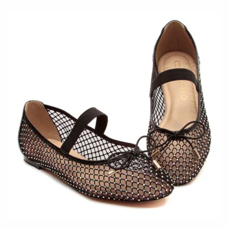 Sapatilha Cecconello Preta com Tela Transparente e Pedrinhas