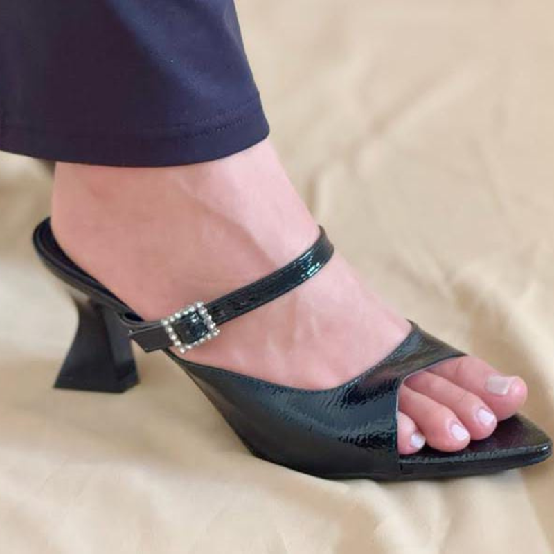 Sofisticação, estilo e conforto reunidos em um modelo único. Produzido com materiais de alta qualidade e acabamento em verniz molhado, este tamanco garante durabilidade, brilho intenso e visual marcante.